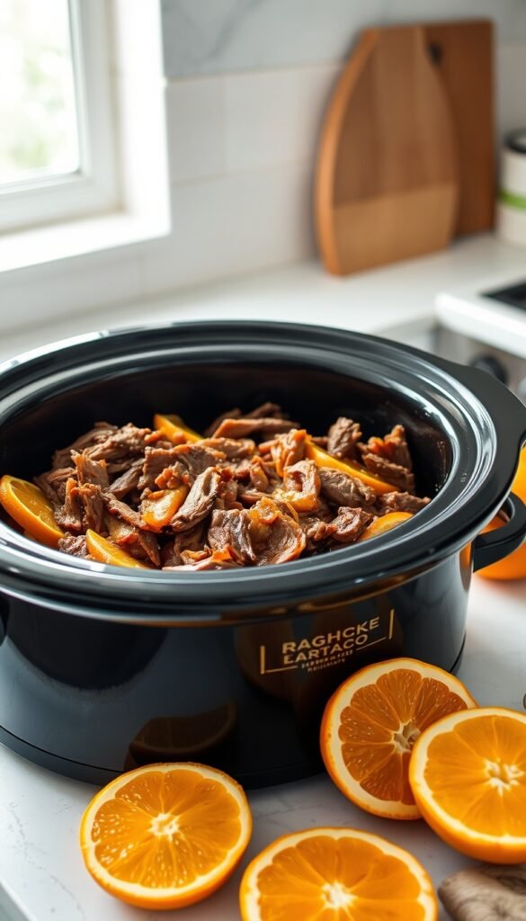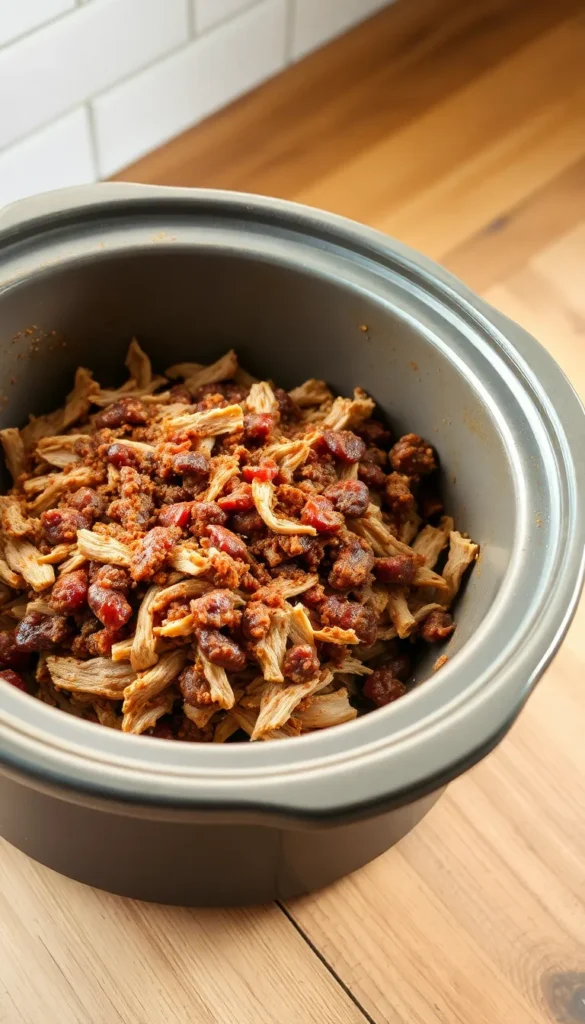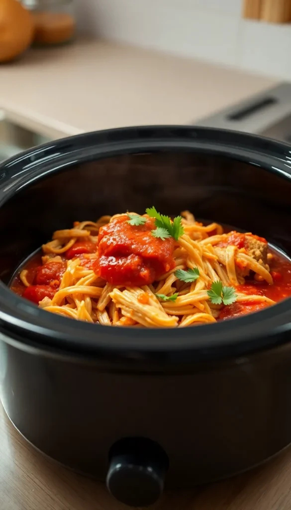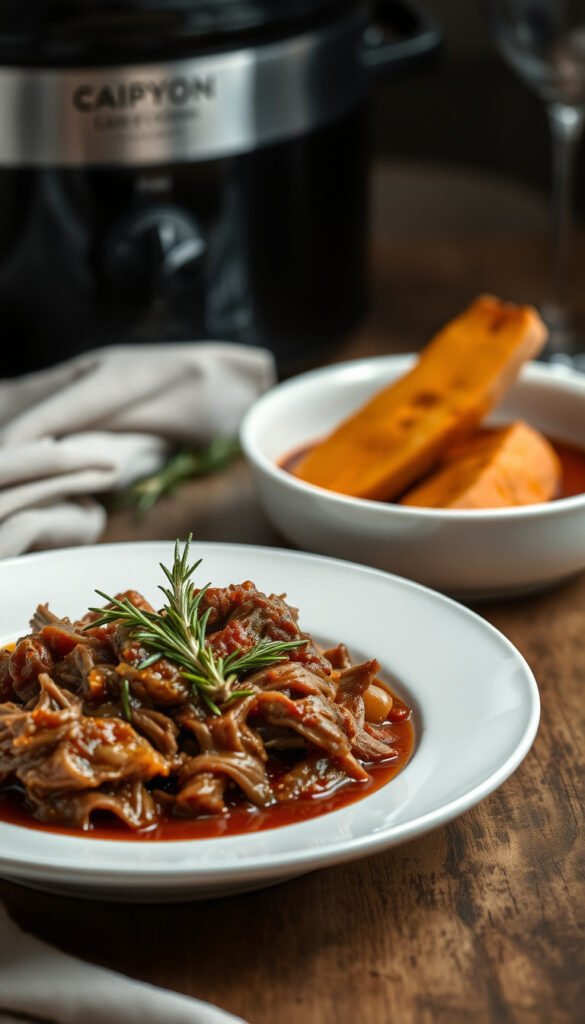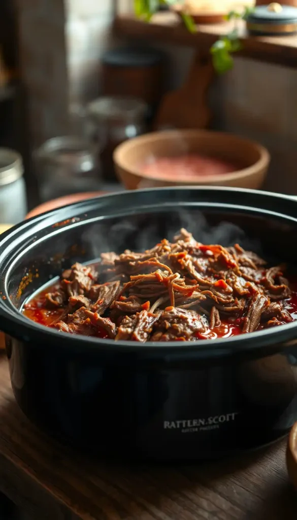 Method: Cook 7–8 hours, shred gently.