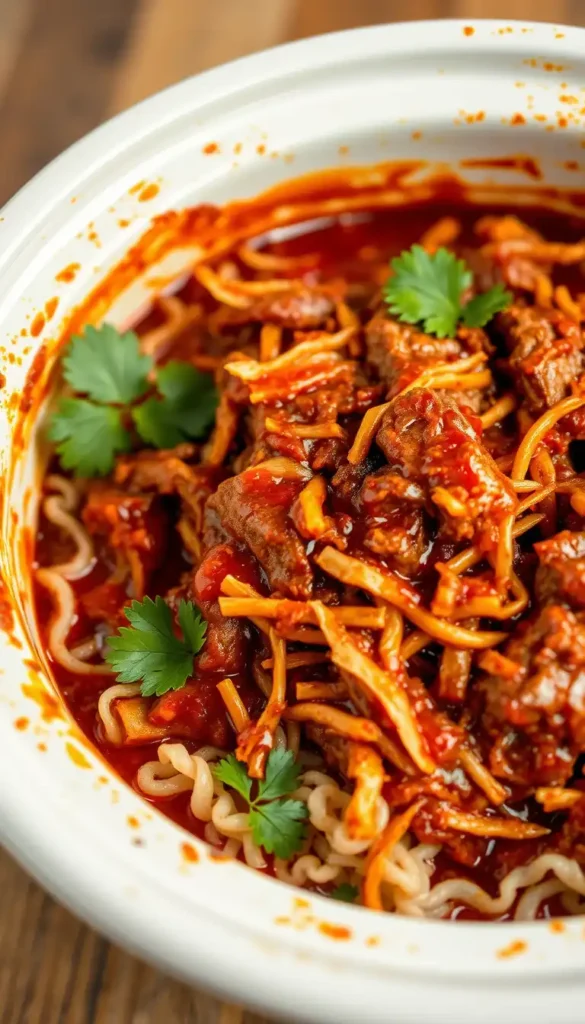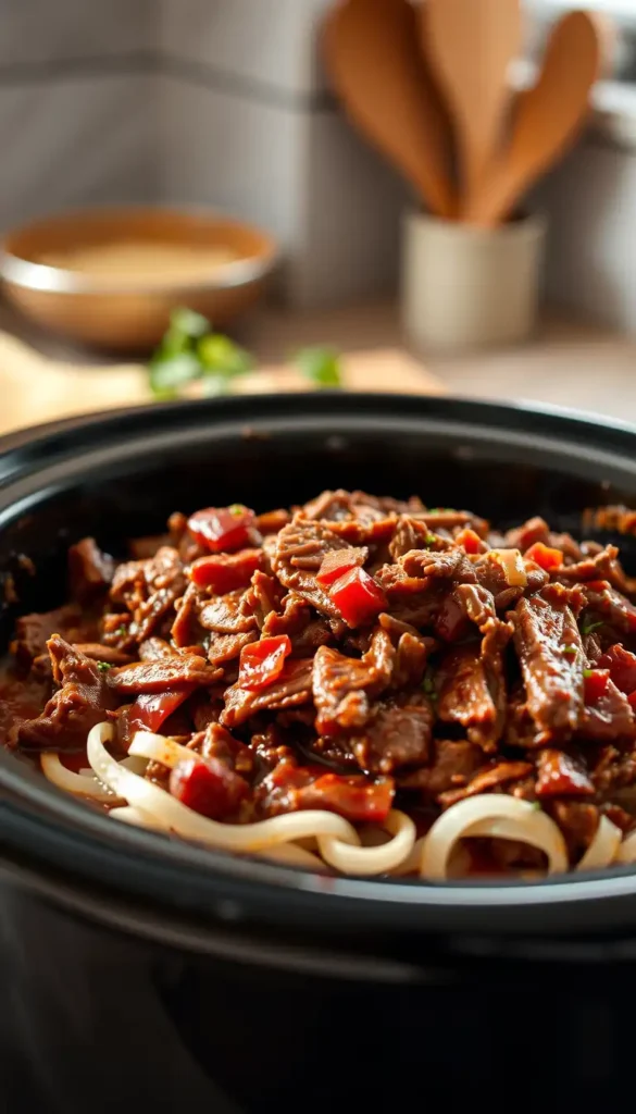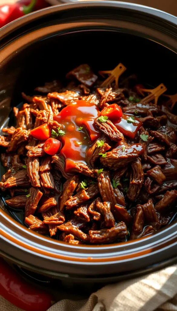 Remove beef and shred with two forks.Return shredded beef to the crock pot and stir into the sauce.Cook on LOW for 15–20 minutes more to soak up flavor.