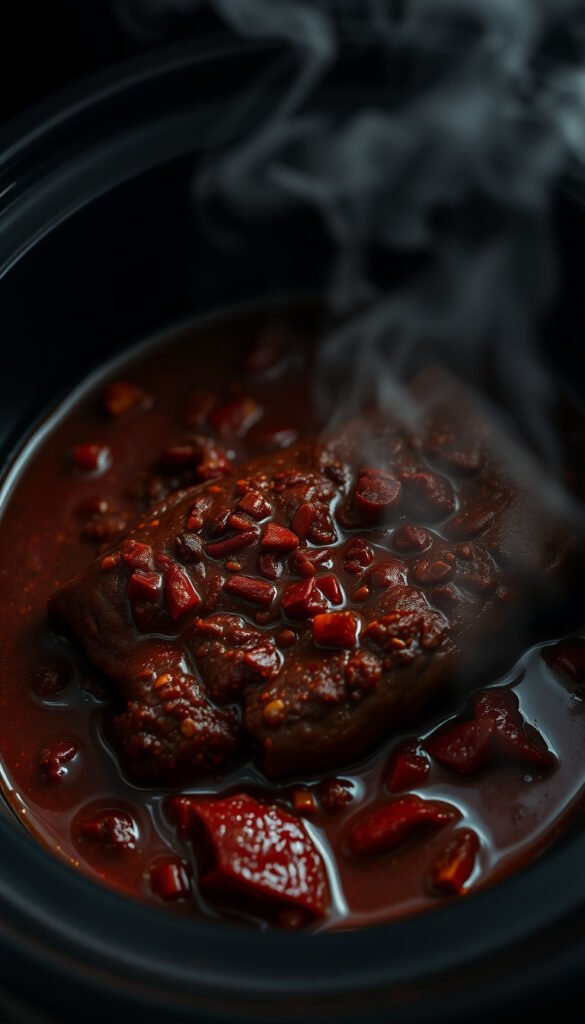 Place beef in the crock pot.Pour sauce over the meat. Cover and cook:LOW: 8–9 hoursHIGH: 4–5 hoursUntil beef is fork-tender.4️⃣ Shred & Serve