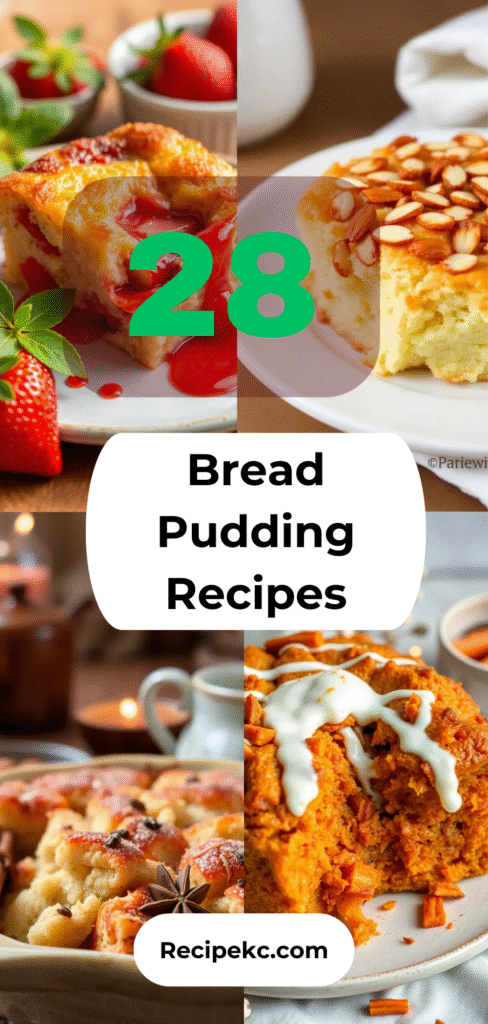 Whether you crave something classic or adventurous, this collection of 28 bread pudding recipes gives you endless options for breakfast, dessert, or any sweet craving. Each recipe is simple, comforting, and customizable—and the best part is you can use any leftover bread you already have.