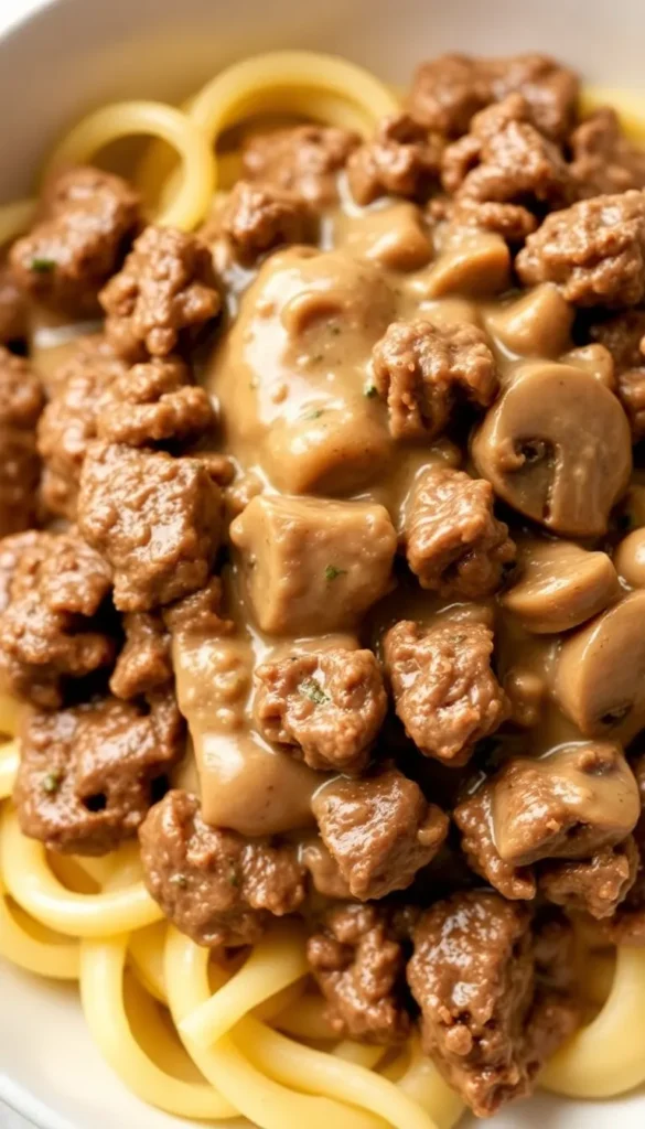 Ingredients: ground beef, mushrooms, broth, sour cream