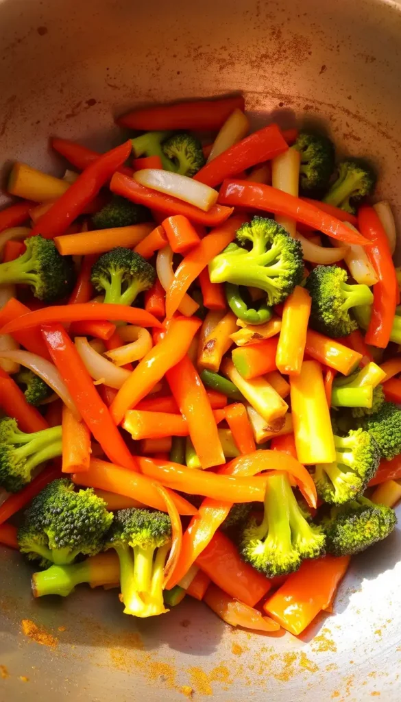 Ingredients: broccoli, carrots, bell peppers, soy sauce