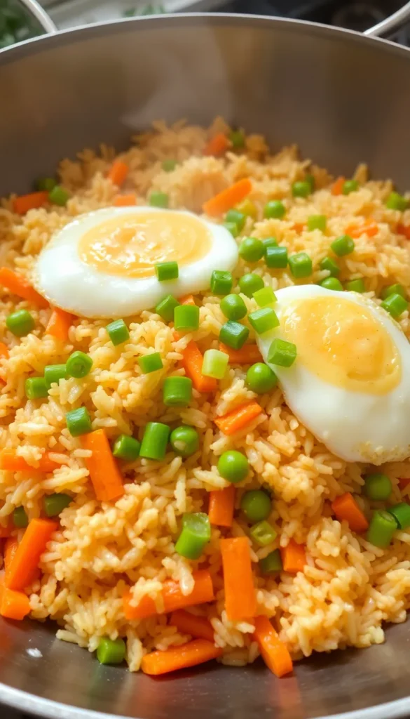 Ingredients: leftover rice, carrots, peas, eggs, soy sauce