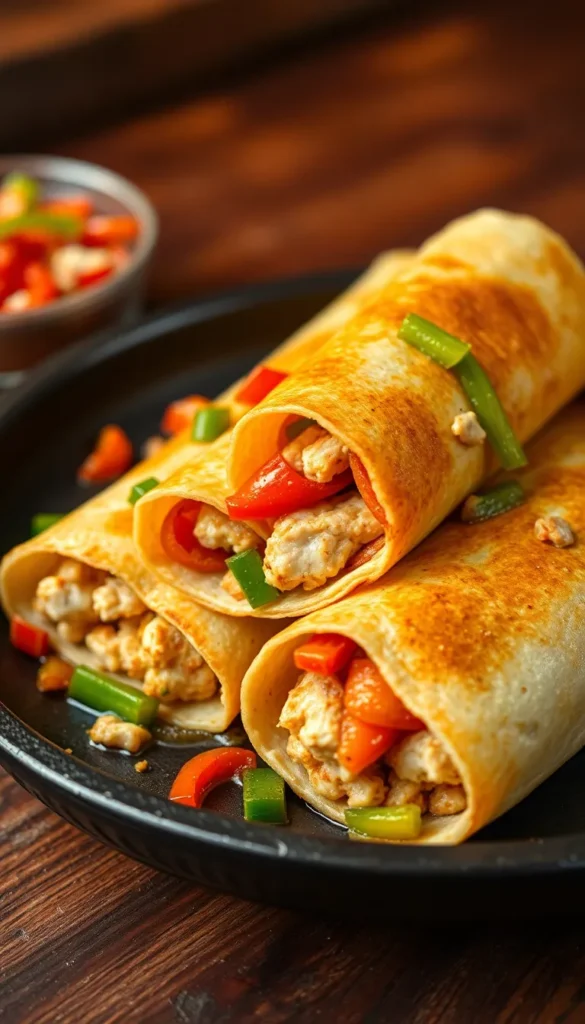 Method: Sauté filling, roll into tortillas, fry lightly.