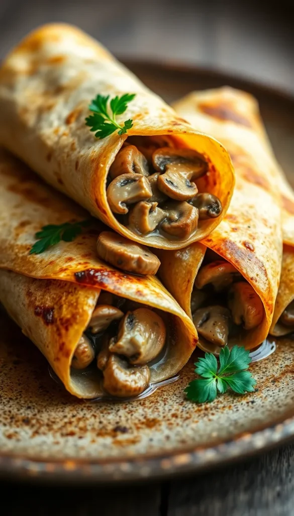 Method: Sauté mushrooms with chicken, roll, and bake.