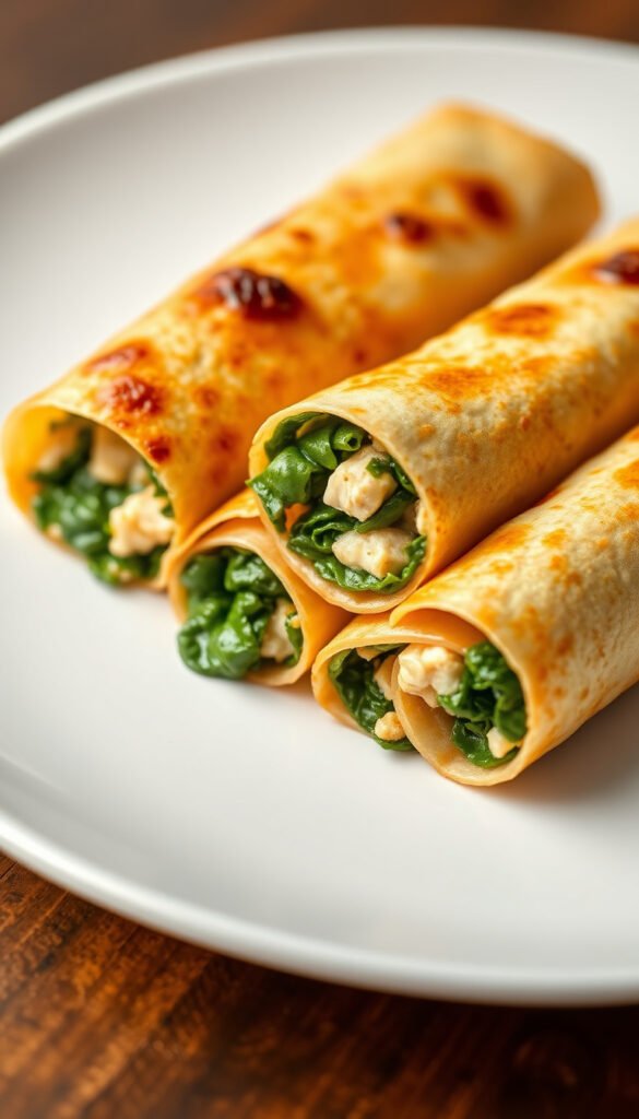 Method: Roll filling, place on baking tray, brush with oil, bake at 400°F for 18–20 minutes.