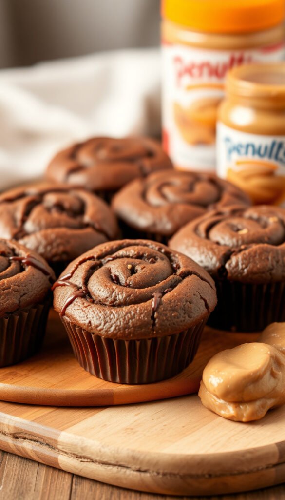 Swirl 1 tbsp peanut butter into each muffin cup before baking.