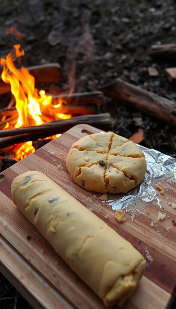 Form cookies at camp and bake in foil over the fire.
