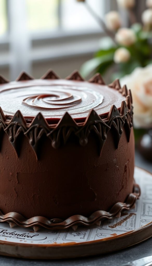 Ingredients: Dark chocolate cake, chocolate ganache, chocolate buttercream