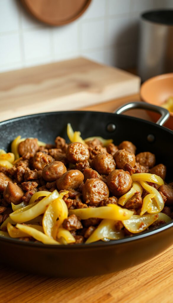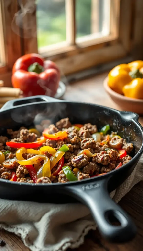 1. Classic Ground Sausage and Peppers Skillet