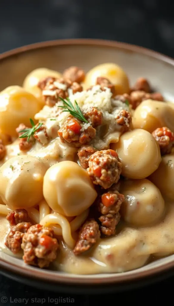 Ingredients: Ground sausage, gnocchi, cream, parmesan