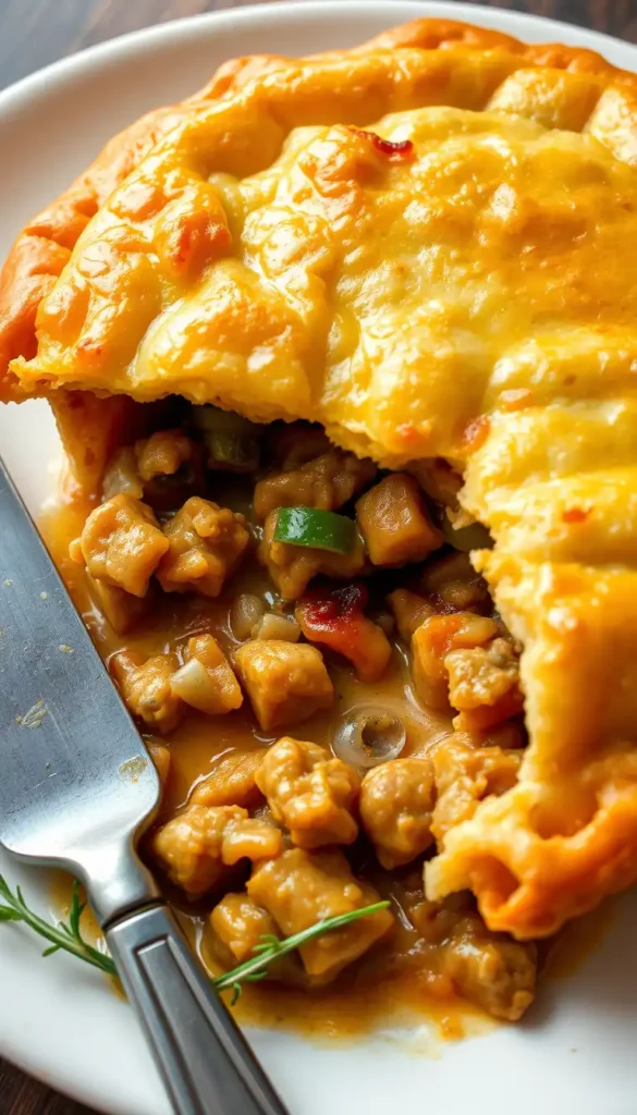 Ingredients: Ground sausage, vegetables, pie crust