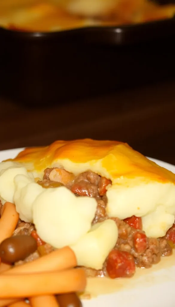 Ingredients: Ground sausage, vegetables, mashed potatoes