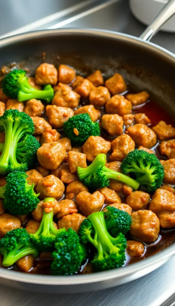 Ingredients: Ground sausage, broccoli, soy sauce, garlic