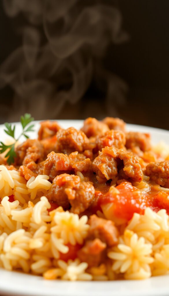 Ingredients: Ground sausage, rice, broth