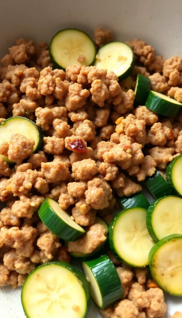 Ingredients: Ground sausage, zucchini, garlic