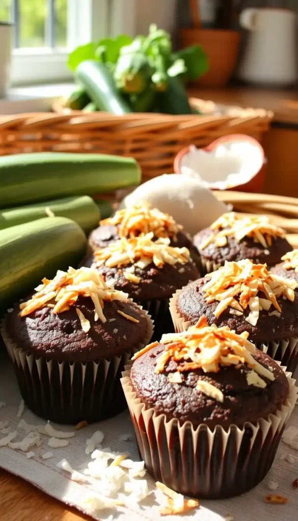 19. Chocolate Zucchini Muffins with Coconut Flakes