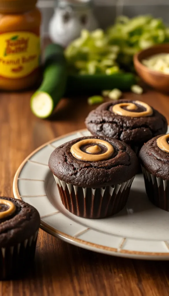15. Chocolate Zucchini Muffins with Peanut Butter Swirl