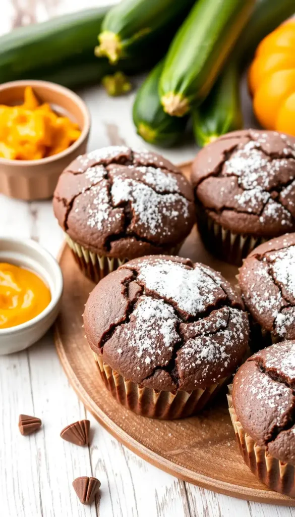 14. Chocolate Zucchini Muffins with Pumpkin Puree