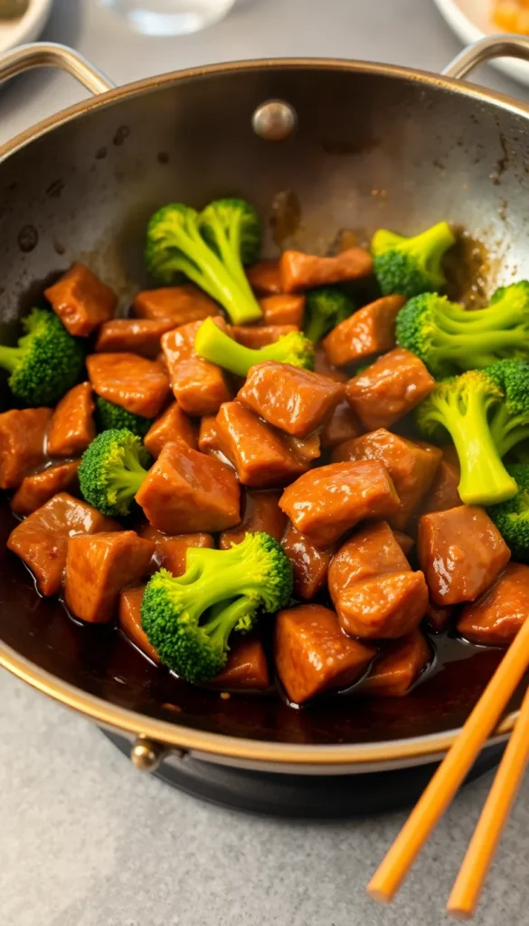 Ingredients: Lean beef strips, broccoli, soy sauce, ginger, and garlic.