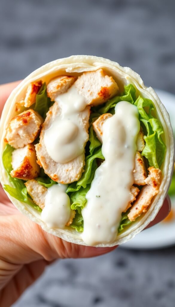 Ingredients: Chicken, Caesar dressing, tortilla.