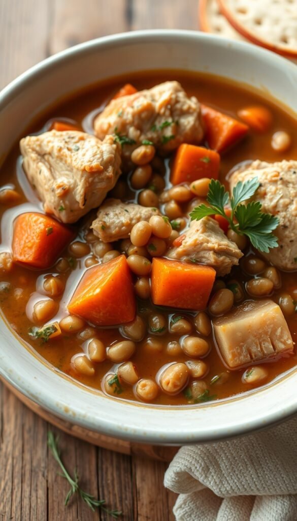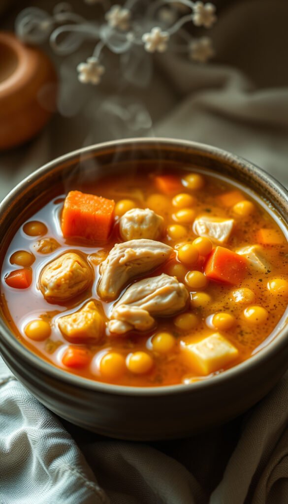Ingredients: Chicken, chickpeas, carrots, broth.