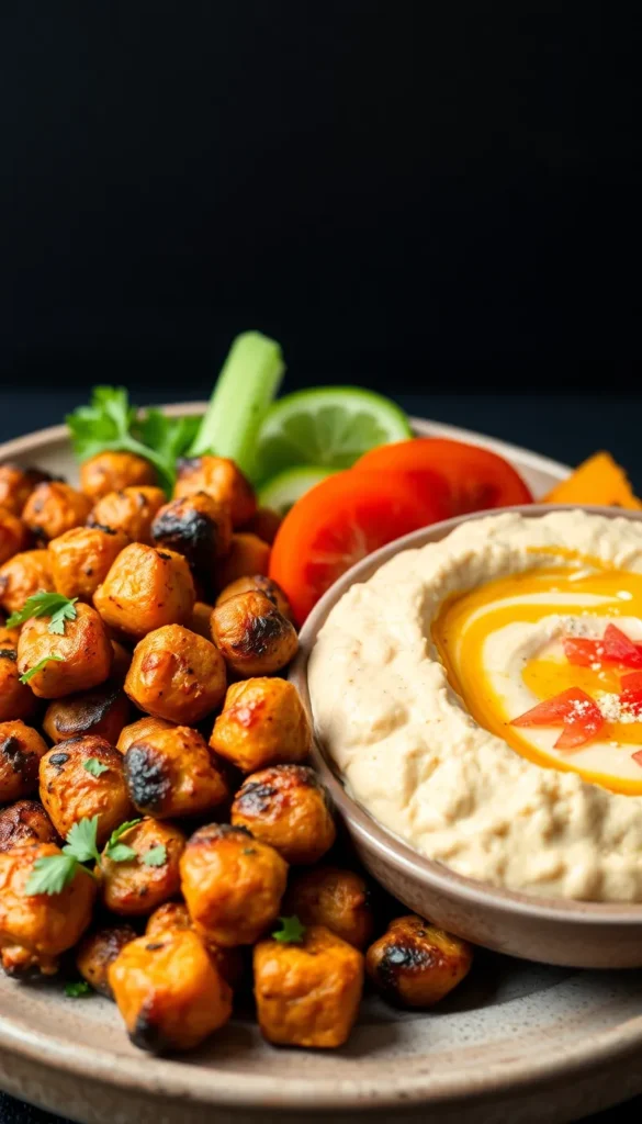 Ingredients: Chickpeas, tahini, spices, veggies.