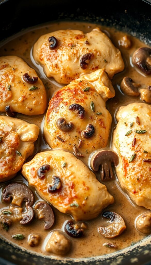 Ingredients: Chicken, mushrooms, cream, garlic.