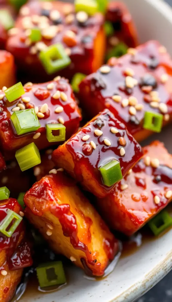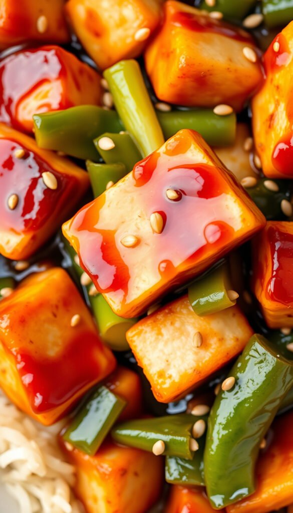 Ingredients: Tofu, teriyaki sauce, and vegetables.