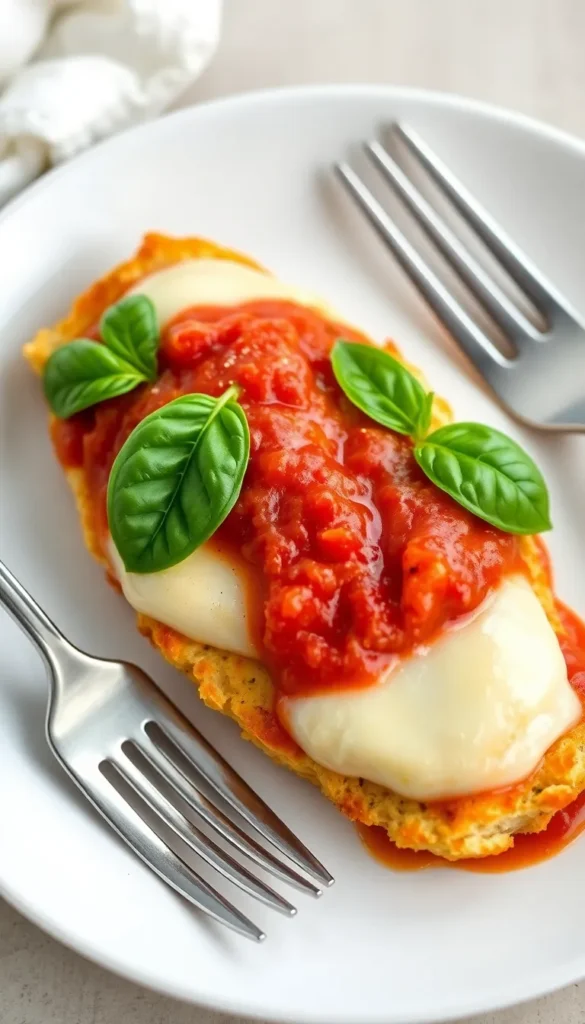 Ingredients: Chicken breast, marinara, and mozzarella.