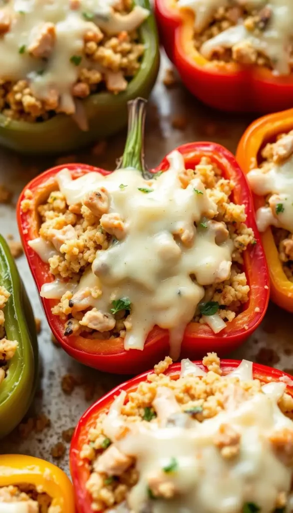Ingredients: Peppers, chicken, quinoa, cheese.
