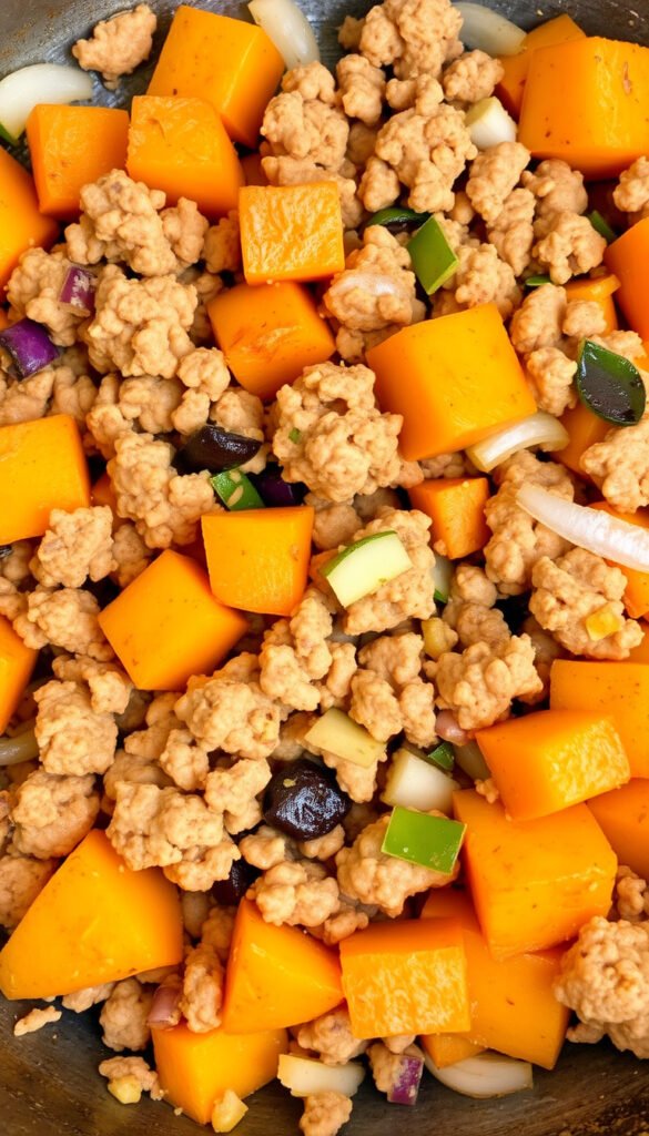 Ingredients: Ground turkey, black beans, and tomatoes.