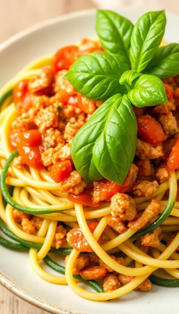 Ingredients: Zucchini noodles, turkey, and tomatoes.
