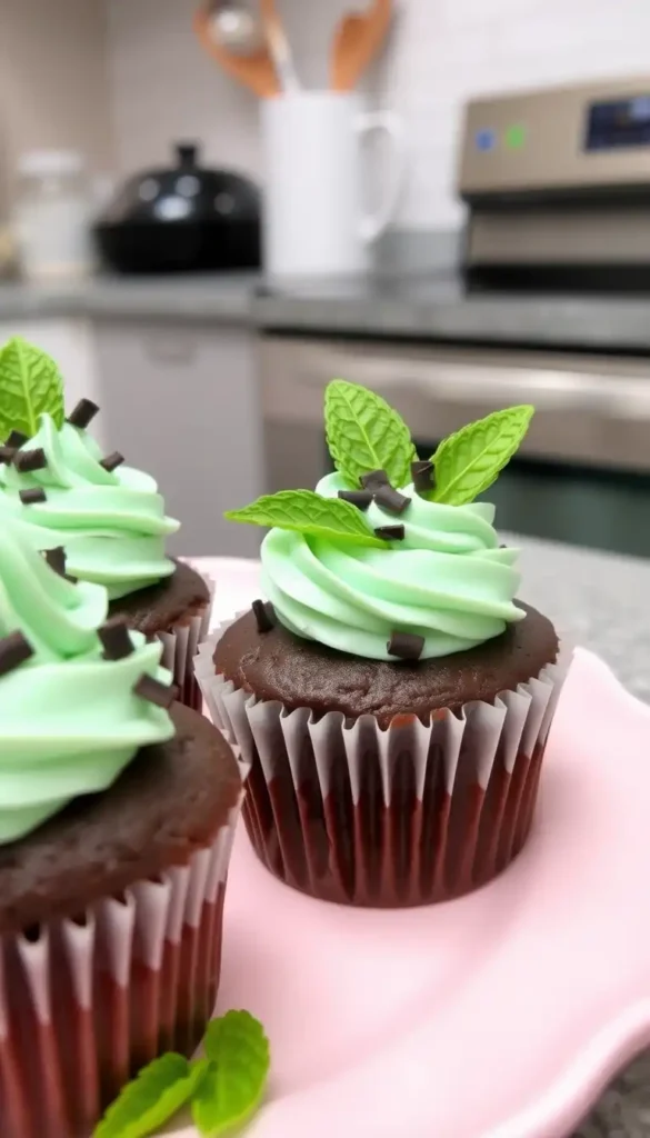 Instructions: Make chocolate cupcake batter, add peppermint extract, and bake 20 minutes.