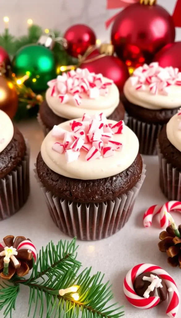 Chocolate cupcakes with peppermint buttercream and crushed candy canes