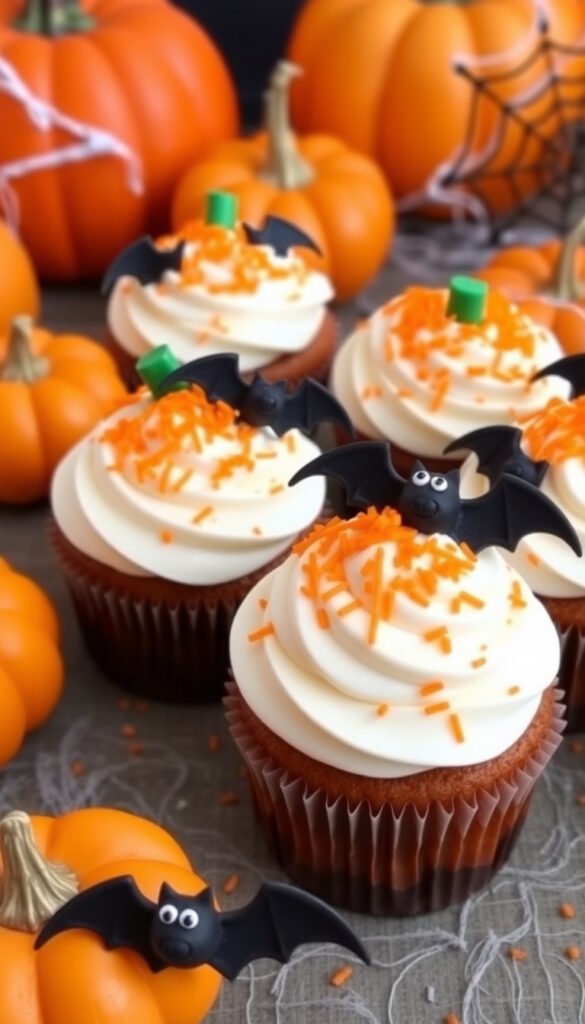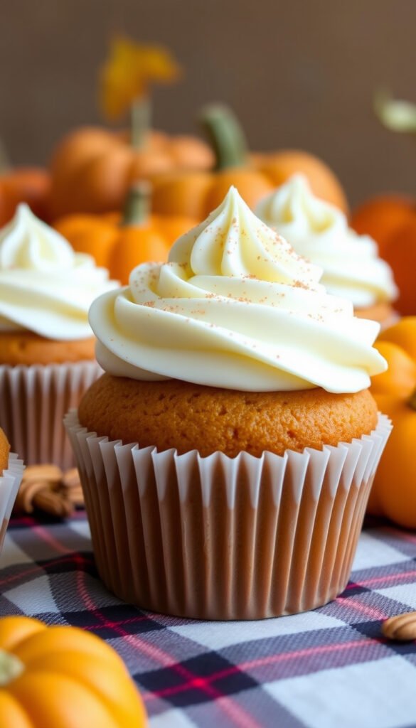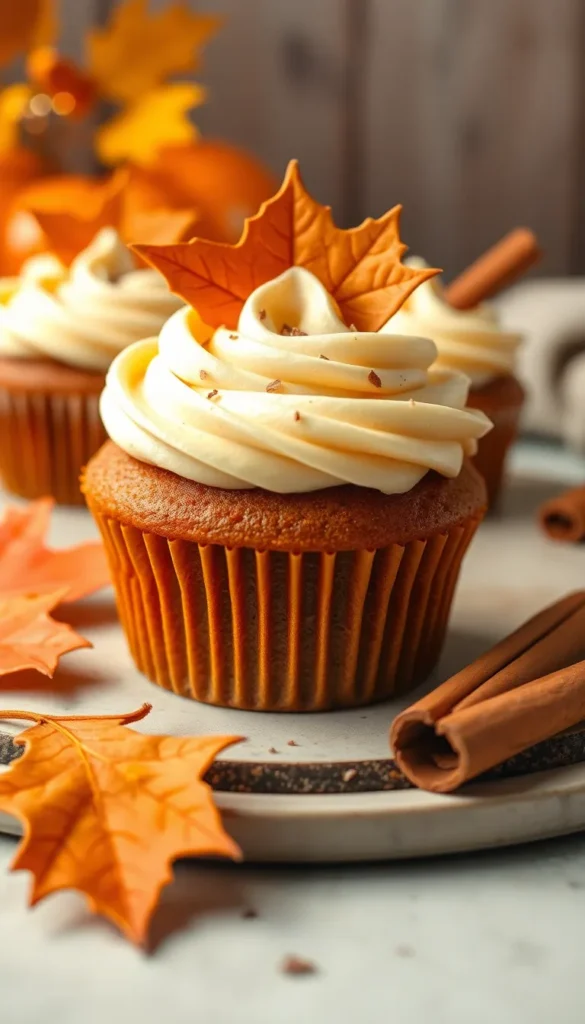 Pumpkin cupcakes with cream cheese frosting and pumpkin spice sprinkle