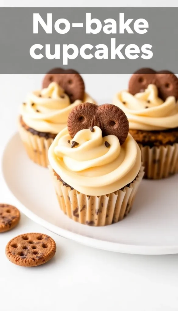 Using crushed cookies and frosting, shaped like cupcakes without baking