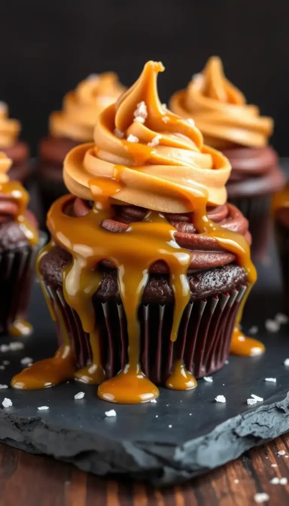 Instructions: Prepare chocolate cupcake batter, fill liners halfway, add caramel, cover with batter, and bake 22 minutes.