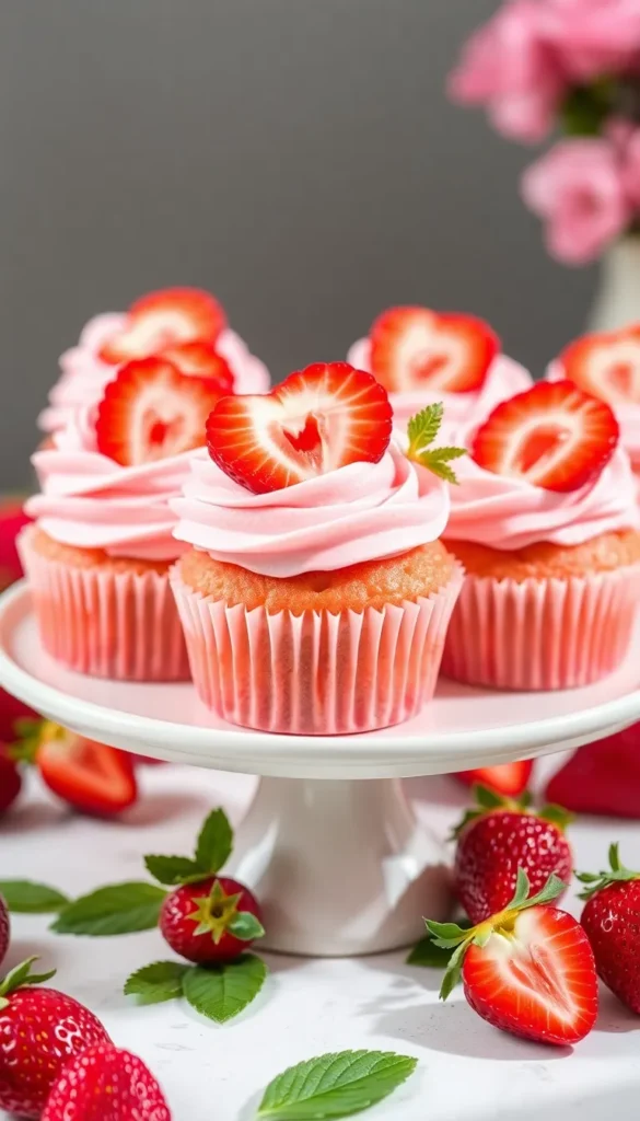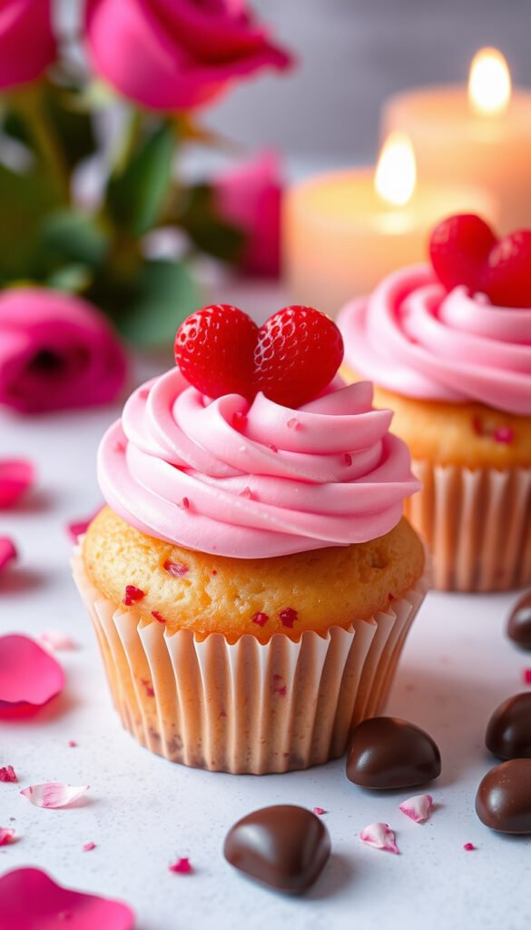 40. Valentine’s Day Strawberry Heart Cupcakes