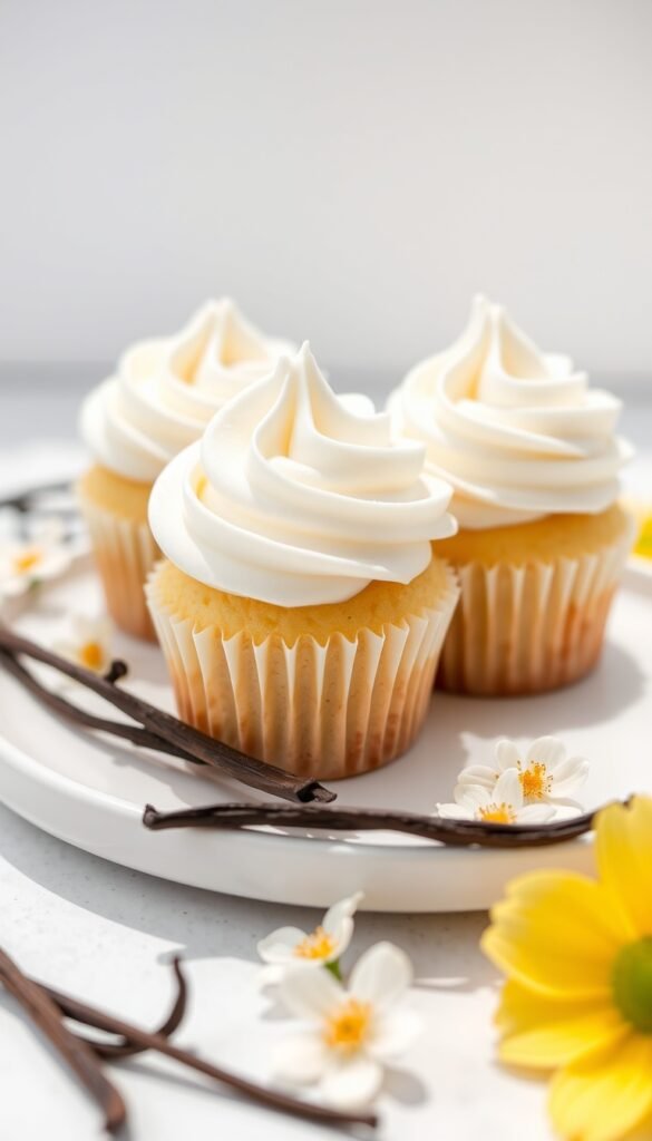 Instructions: Cream butter and sugar, add eggs one by one, mix vanilla bean paste, alternate adding flour and milk. Bake at 350°F for 18-20 minutes.