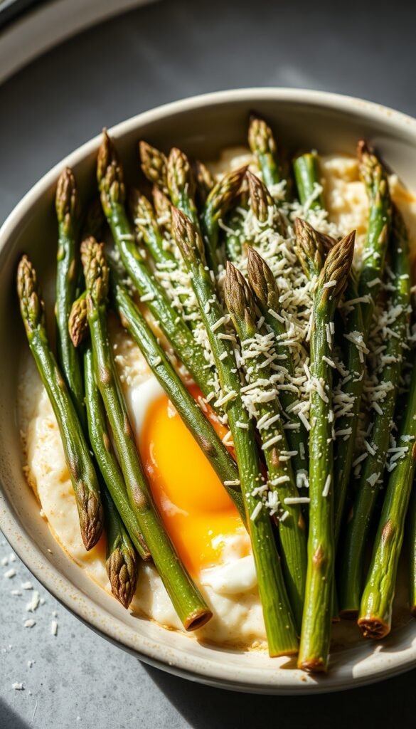 Asparagus, eggs, Parmesan