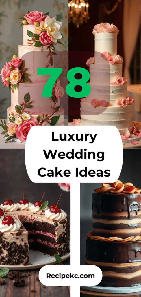 These 78 luxury wedding cake ideas provide a complete recipe base for bakers, wedding planners, and couples searching for inspiration. Each recipe offers a blend of premium flavors, fine ingredients, and elegant presentation — perfect for high-end weddings and luxury celebrations.