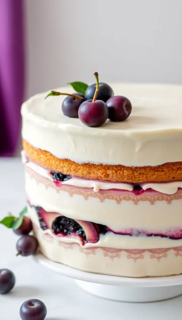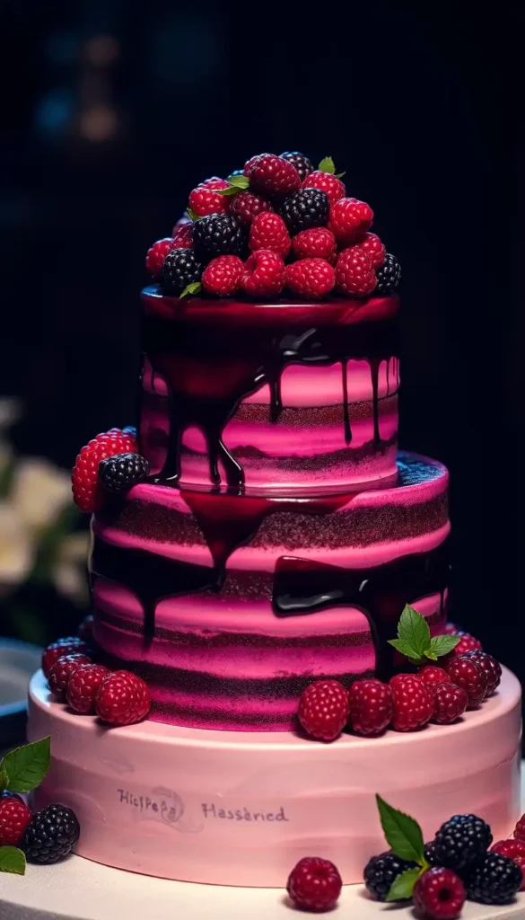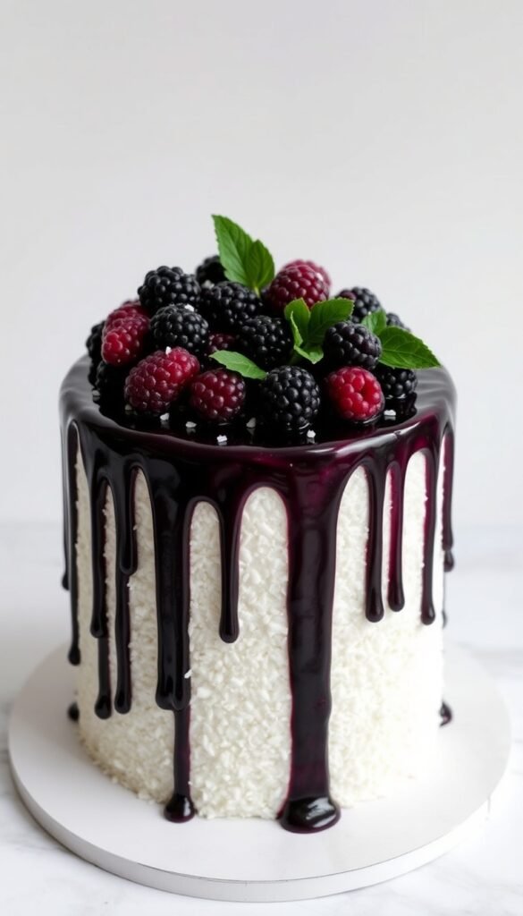 Blackberry puree + wine buttercream + dark fruit garnish.