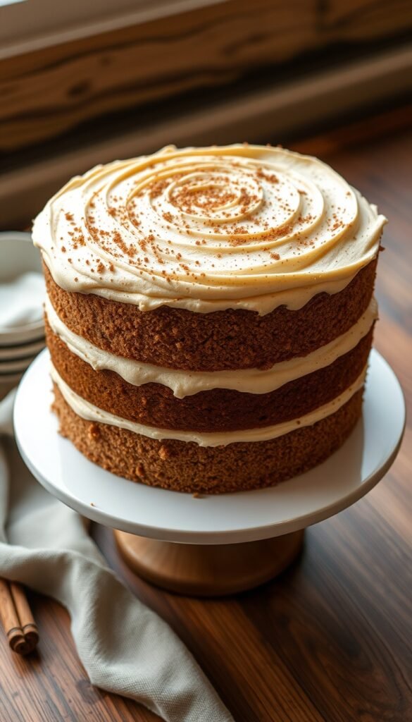Spiced carrot filling + cream cheese frosting + edible flowers.