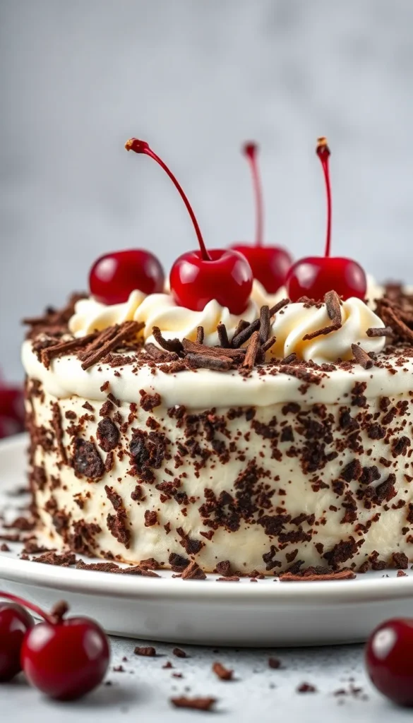 Add cherries + chocolate shavings.