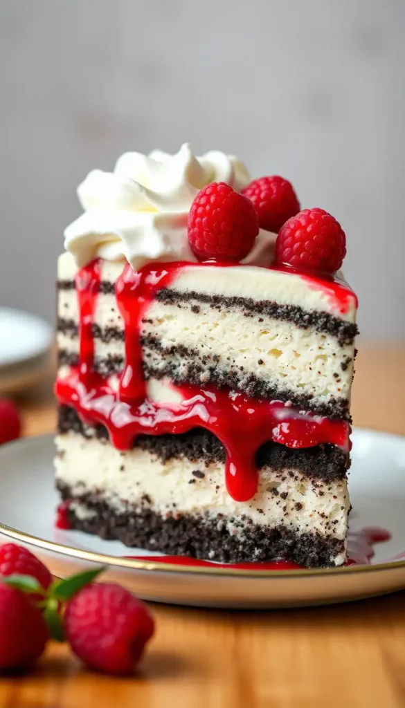 Add raspberry coulis between the cake and cream layer.