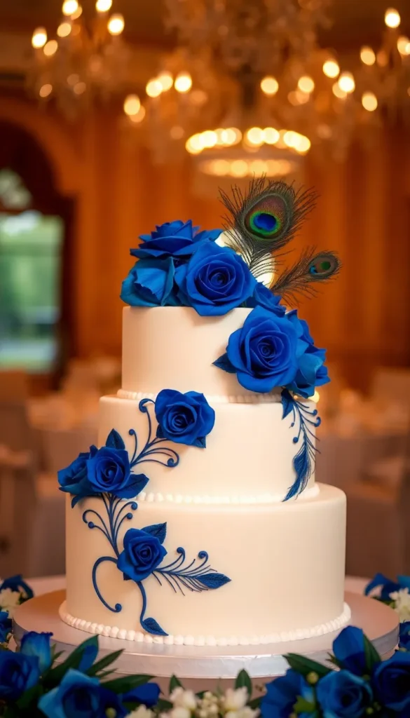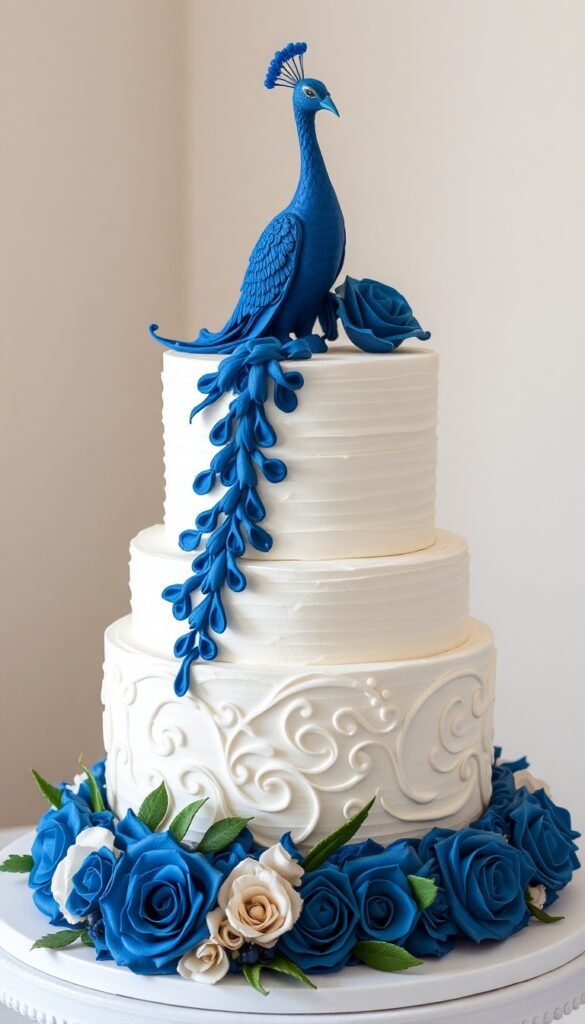 54. Peacock Cake with Royal Blue and Ivory Combo