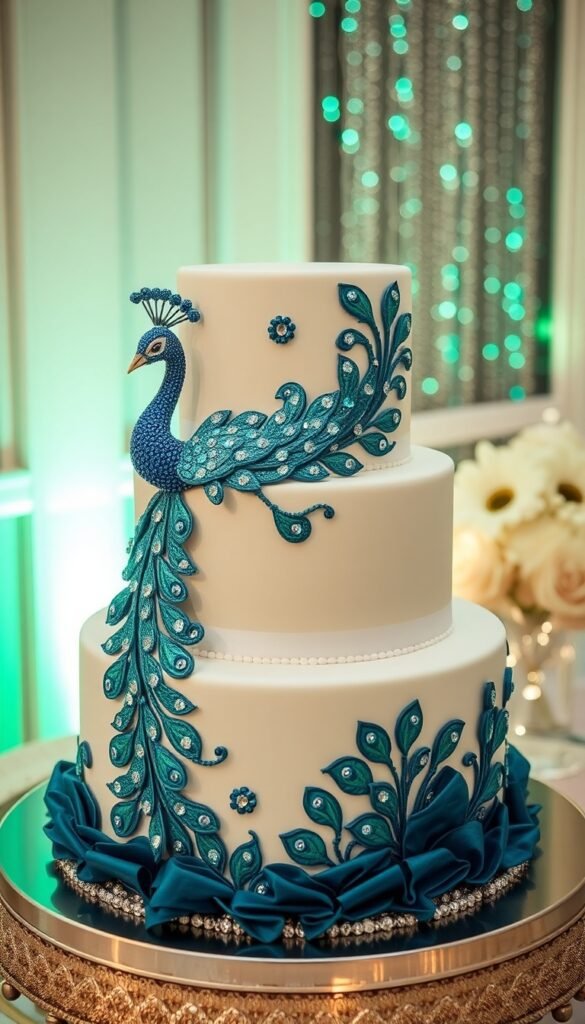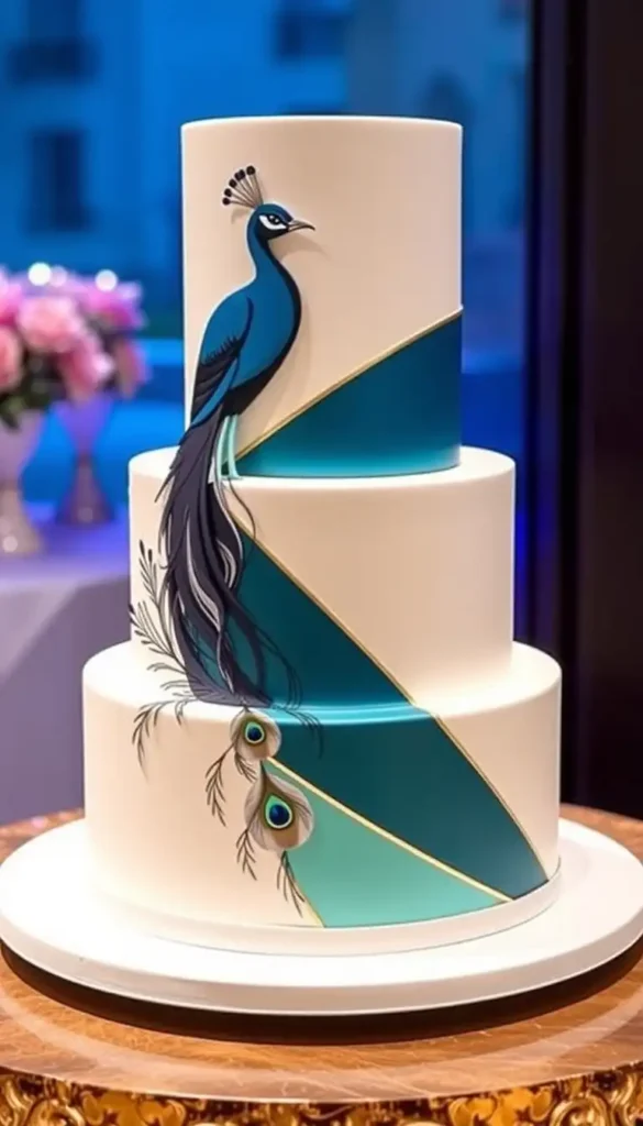 A peacock wedding cake is more than just a dessert — it is a symbol of royalty, elegance, beauty, and timeless love. Inspired by the rich colors of peacock feathers like emerald green, royal blue, gold, and turquoise, these cakes are perfect for couples who want their wedding to feel luxurious and unforgettable.