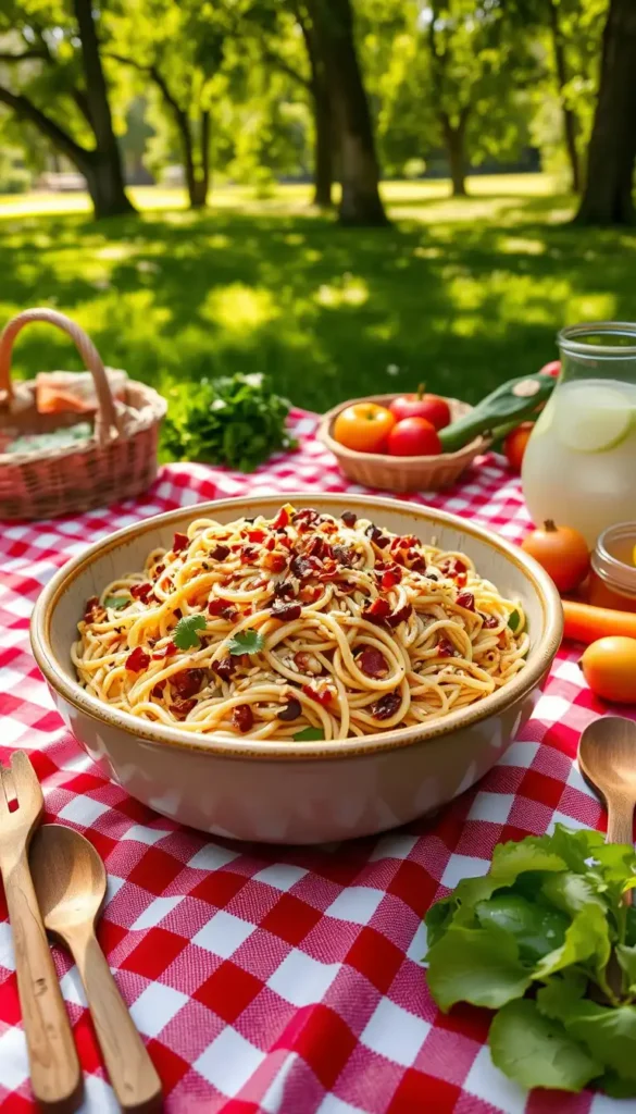 The Pioneer Woman Ramen Noodle Salad is a staple at many family get-togethers because it holds up well without getting soggy quickly. The crunchiness of the noodles and nuts remains intact for hours if the dressing is added just before serving.