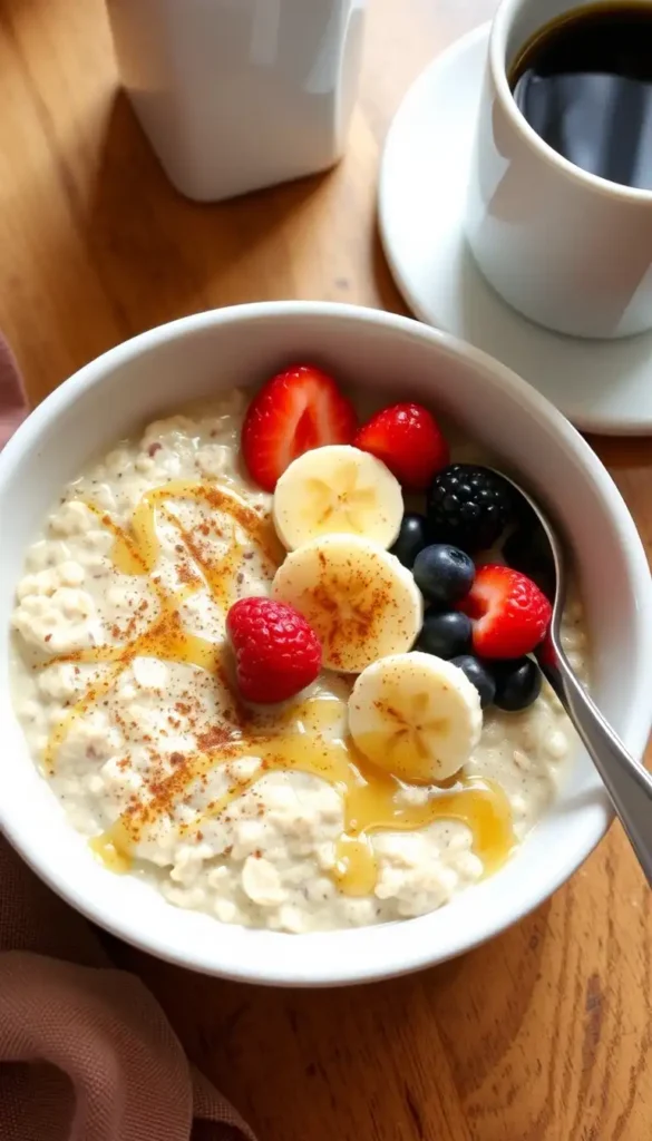 - Add oats, water/milk, and cinnamon to rice cooker.
